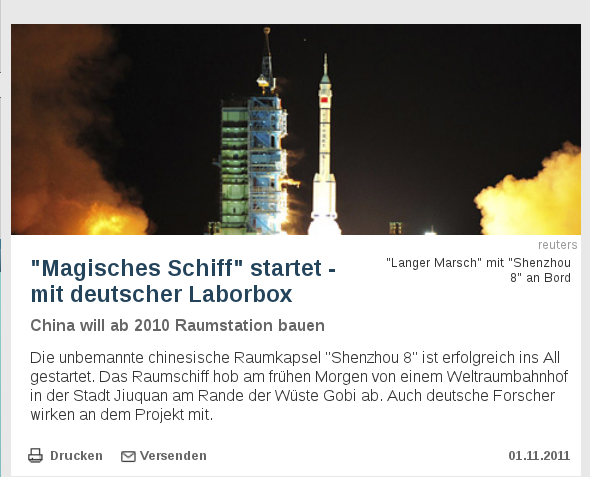 Nach heute.de hat China offenbar eine Zeitmaschine entwickelt, wie sonst können sie 2011 wollen, ab 2010 eine Raumstation zu bauen?