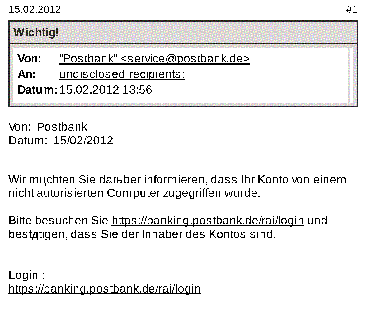 BTW: In einer Mail können Sie als Absender jeden eintragen. Auch die Postbank.