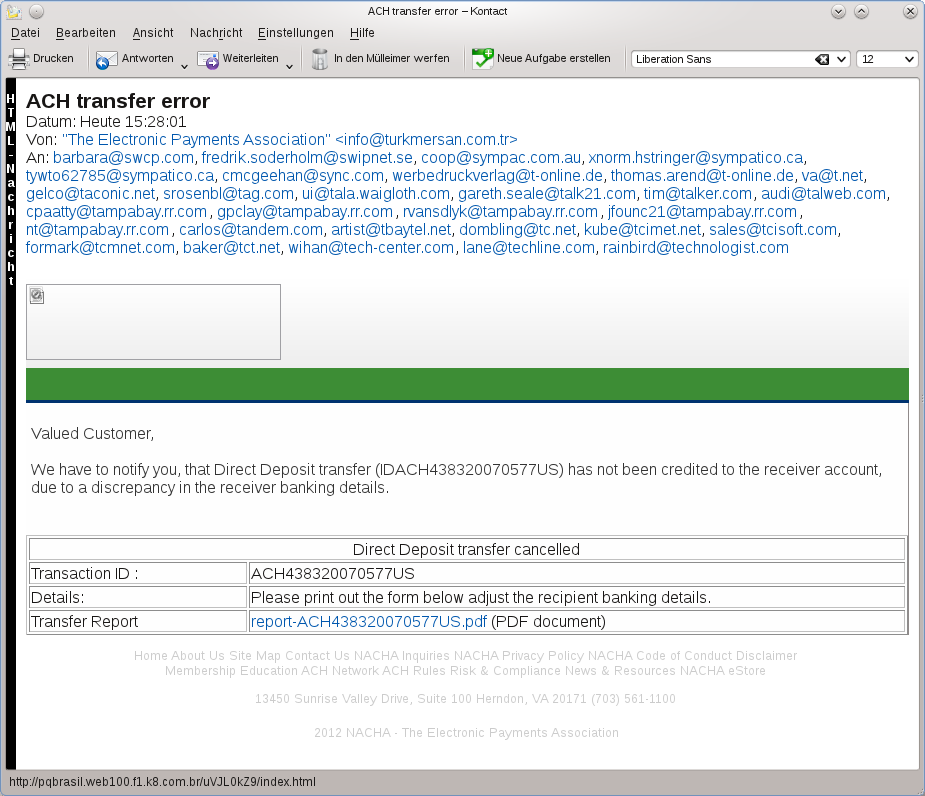 Spam Mail ACH transfer error