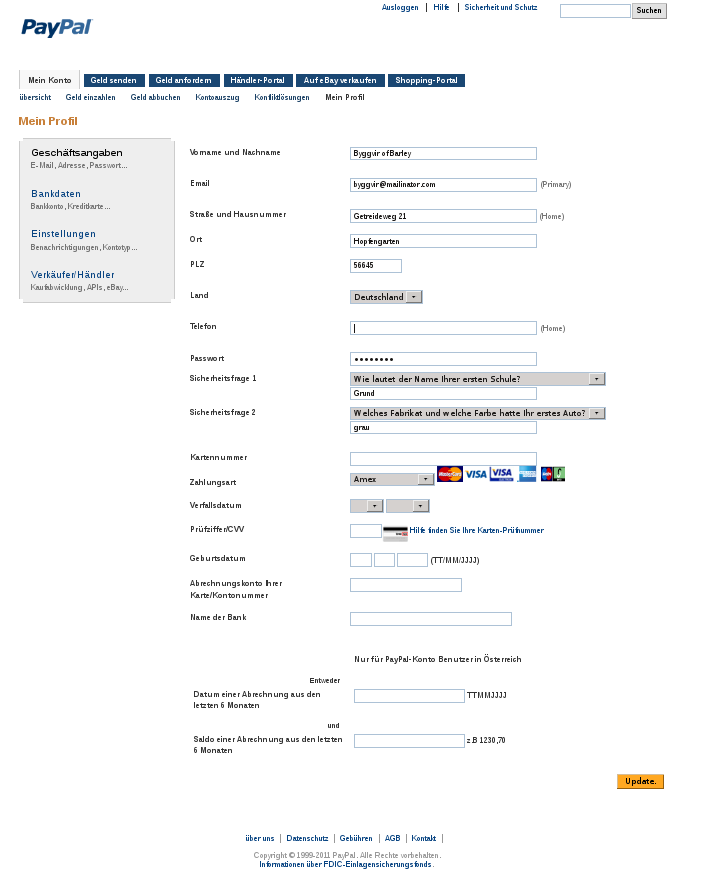 Seht eigentlichIst zu befürchten. Da er mit den gefakten Daten jedoch zum Scheitern verurteilt ist, müssen sie es wohl nochmal versuchen. Auch wenn das Formular täuschend echt aussieht, Paypal befüllt das Formular mit bekannten Daten vor. Die Angaben hier stammen von mir. Eine Abfrage meines Namens wäre also nicht notwendig. Dies sollte bei jedem Verdacht erregen. Tut es aber wohl nicht, sonst wäre die Masche längst eingeschlafen. So richtig weiter geht es ab hier nicht. Ich erhielt nur ein lapidare Meldung „Fehler“.