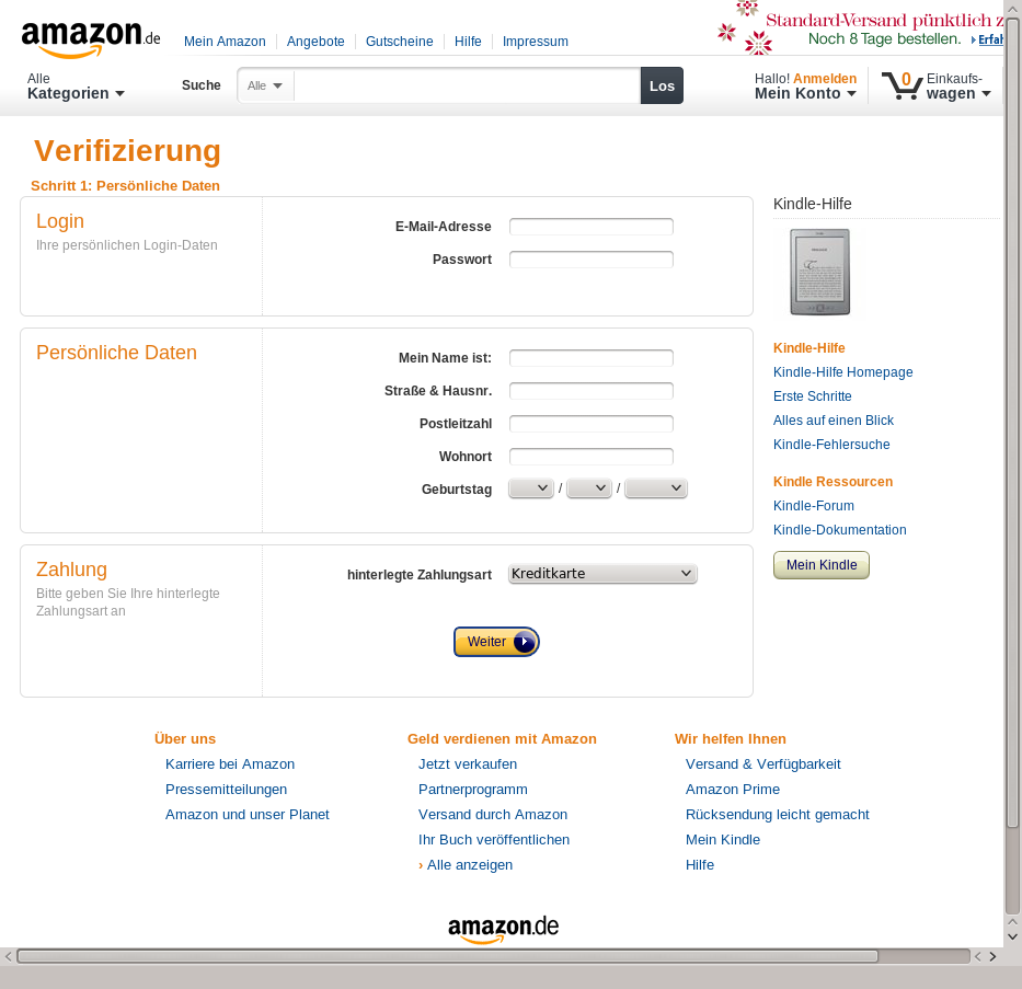 Folgt ich dem Link in der obigen Mail, dann öffnet sich ein Seite, die ich mir hier darzustellen erspare, mit einem Hinweis zur Verifikation meiner Daten. Im zweiten Schritt wird das folgende Formular aufgerufen, in dem ich die Daten für die Verifizierung eingegeben sollen.