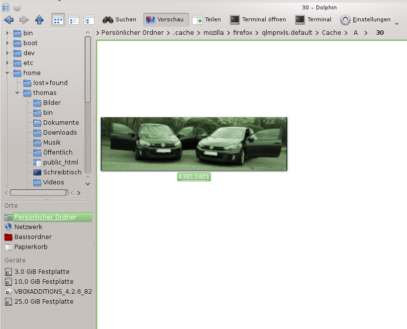 Auch im Cache des Browser findet sich eine Spur Ihres Besuches. Im Cache speichert der Browser Dateien, die er heruntergeladen hat, um sie beim nächsten Aufruf nicht nochmals laden zu müssen. Sie können den Eintrag in der Chronik von Hand löschen, aber im Cache des Browsers verbleiben die heruntergeladenen Dateien, wie das folgende Bild Titelbildes dieser Seite im Verzeichnisbaum der Festplatte zeigt.