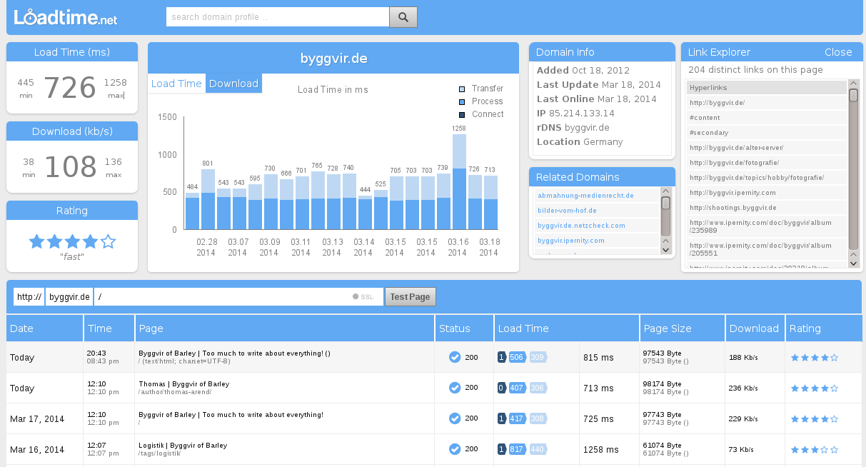 Es gibt acht über die Welt verteilte Server, deren IP-Adressen der Betreiber auch bekannt gibt, mit denen die Performance gemessen wird. Ein historischer Bericht sieht dann etwa wie folgt aus: