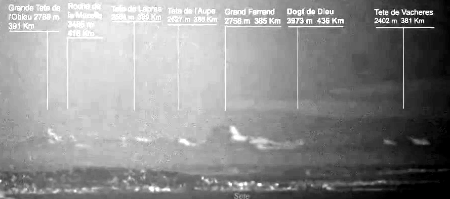The table shows that the Tete de Vacheres is on the left of Sete and Cap d’Agde and not on the right. The mountains lie between 47.275° in the north and 48.230° in the south.