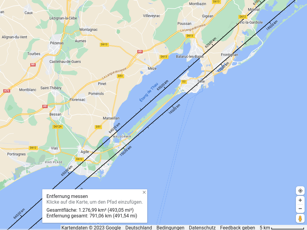 Now we zoom into the map in the area around Sete and Cap d’Agde.