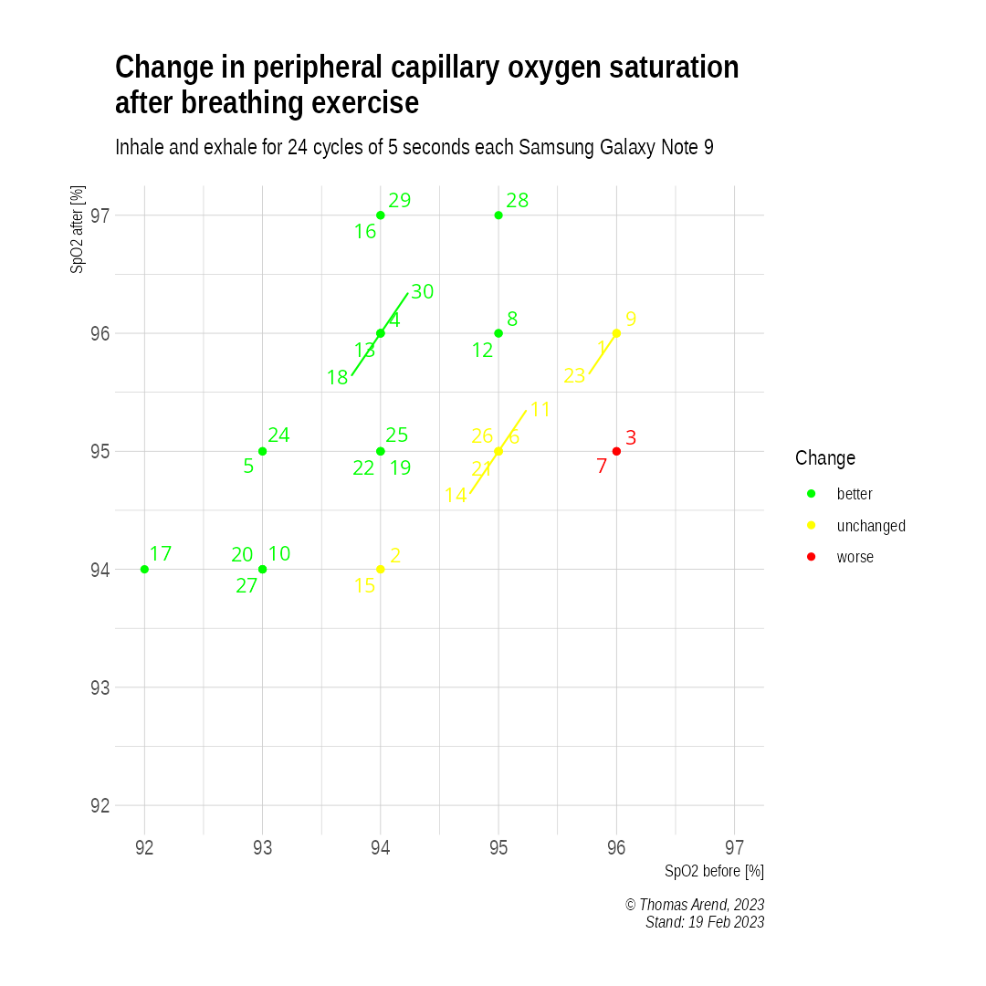 This study was developed step by step with the help of ChatGPT based on real data. Note: Please note that this study is hypothetical and is intended for demonstration purposes only. It is important to consult a healthcare professional before starting any new breathing or exercise program. Thomas Arend, ChatGPT, 17.02.2023, update 19.02.2023 Update: Increased… Effects of a 24-breath breathing exercise on heart rate and SpO2 levels in healthy adults weiterlesen